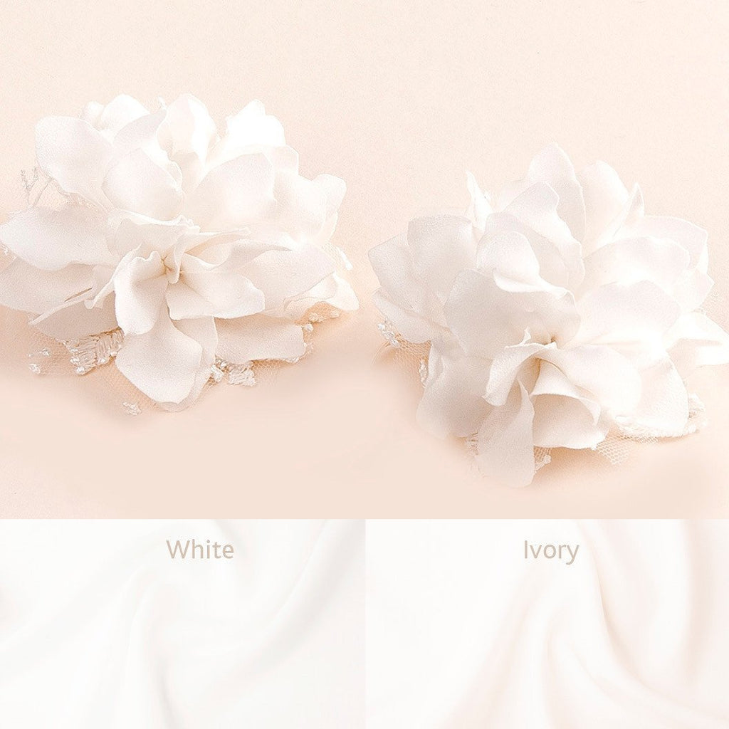 Vintage inspired wedding hair piece adorned with lace details. Petals of this hair piece are carefully handshaped and assembled disorderly to create a whimsical look.