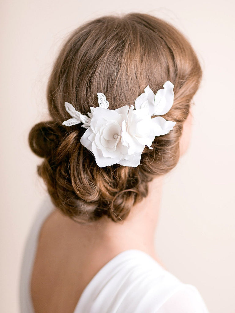 Magnolia blooms are very well known for their smell. Even this flower hair piece won‘t smell the same, we have recreated the shape of lily magnolia to design flower hair piece to wear on a bridal up do.
